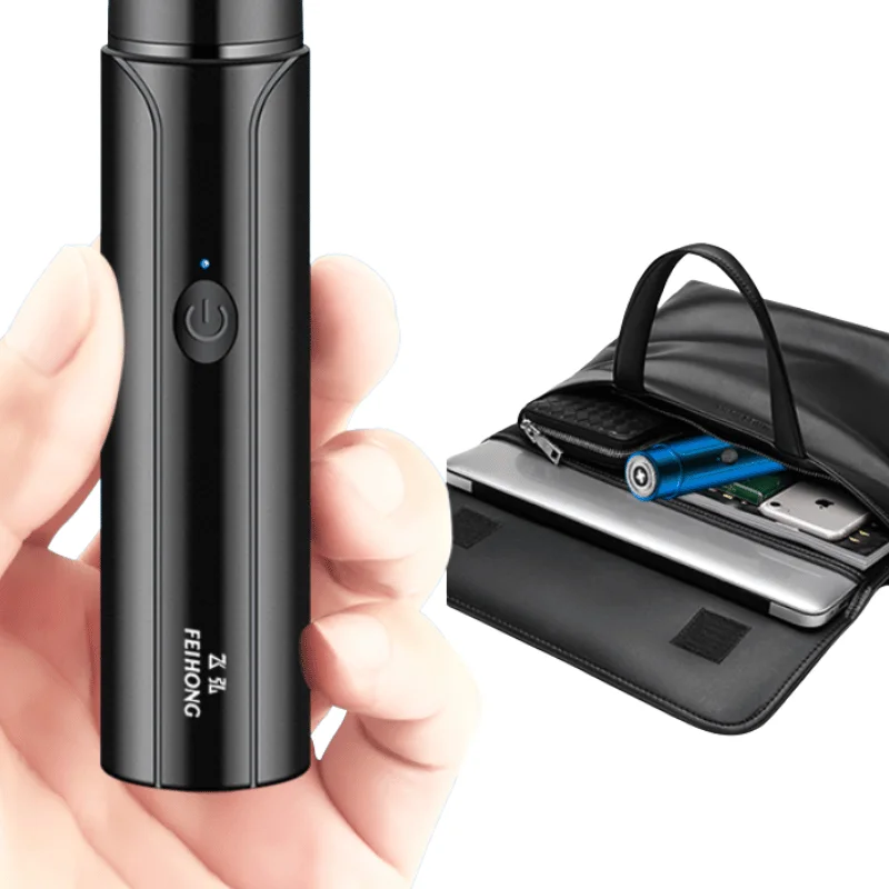 لماذا تتقيد بمرآة الحمام وأسلاك الكهرباء؟ لقد أعدنا تعريف مفهوم الحلاقة لتصبح "محمولة" بالكامل. هذه الماكينة صُممت لتكون رفيقك الذي لا يغادر جيبك.